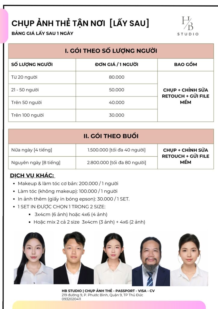 👉 Phù hợp cho doanh nghiệp cần ảnh gấp để làm hồ sơ nội bộ, thẻ nhân viên, hoặc các tổ chức có lịch làm hồ sơ gấp.